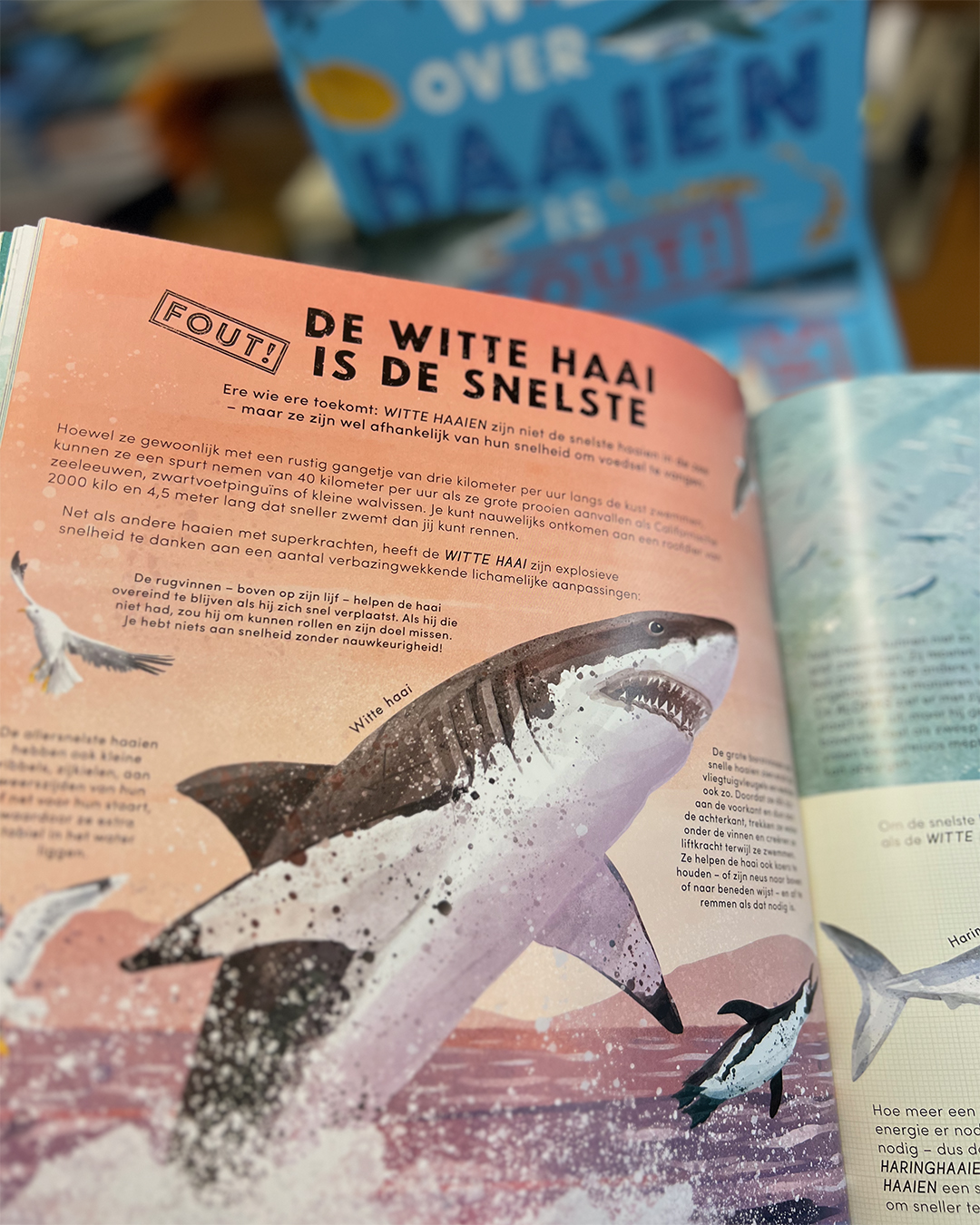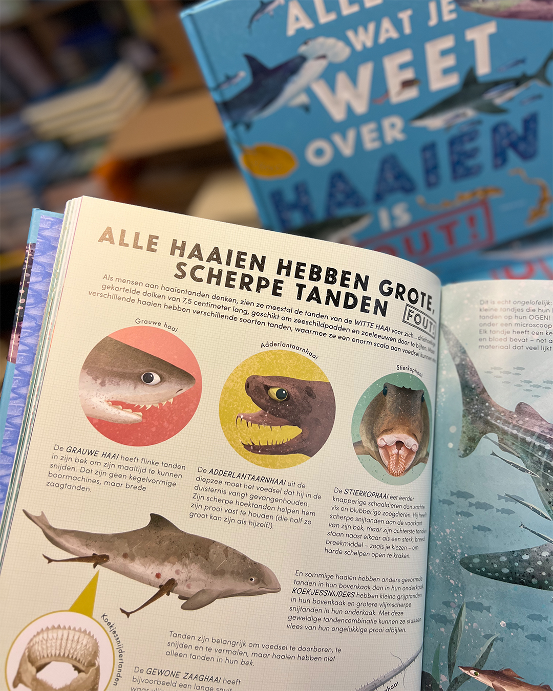 Laten we de waarheid ontdekken! Van angstaanjagende tanden tot briljante hersenkracht: dit ingenieuze boek staat vol met zoveel onderwaterwonderen dat je al snel een échte haaienexpert bent.