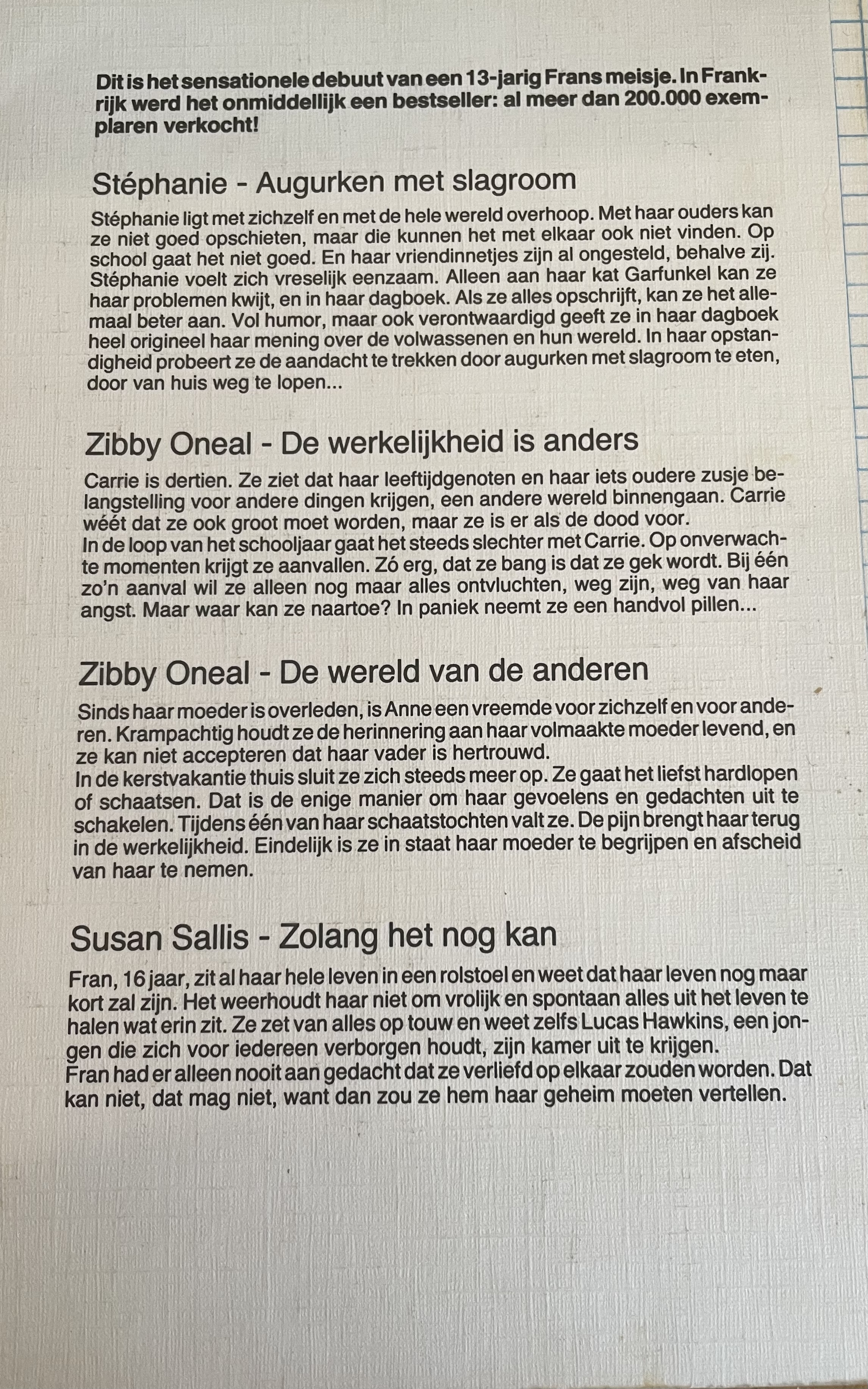 Stephanie ligt met zichzelf en met de hele wereld overhoop. Met haar ouders kan ze niet goed opschieten, maar die kunnen het met elkaar ook niet vinden. Op school gaat het niet goed. En haar vriendinnetjes zijn al ongesteld, maar zij nog niet. Stephanie voelt zich vreselijk eenzaam. Alleen aan haar kat Garfunkel kan zij haar problemen kwijt, en in haar dagboek. Als ze alles opschrijft, kan ze het allemaal beter aan. Vol humor, maar ook verontwaardigd geeft ze in haar dagboek heel origineel haar mening over de volwassenen en hun wereld. In haar opstandigheid probeert ze de aandacht te trekken door augurken met slagroom te eten, door van huis weg te lopen....