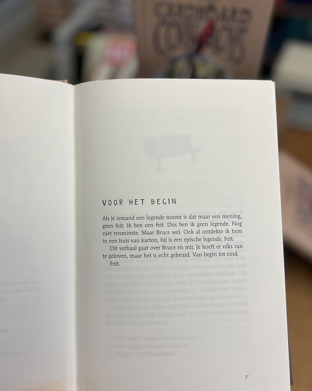 Als hij op een dag een leeg frisdrankblikje in het water wil gooien, wordt hij tegengehouden door Bruce. Bruce woont in een kartonnen huis op de oever en heeft geen zin in kinderen die zijn voortuin vervuilen…