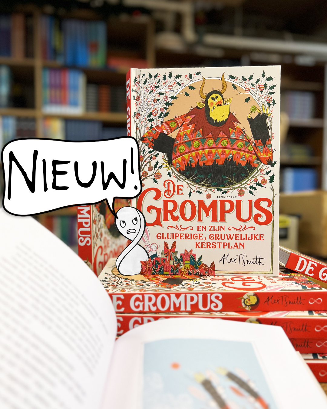 Geïnspireerd door de Krampus met een vleugje van de Grinch heeft Alex T. Smith een verrukkelijk chagrijnige mopperkont bedacht, die, als zijn favoriete spruitjes zijn uitverkocht, maar één ding wil: Kerstmis stoppen. Dus gaat hij op weg naar de Noordpool om de Kerstman een lesje te leren.