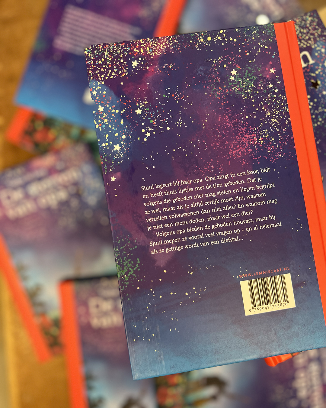 Sjuul logeert bij haar opa. Haar opa is heel bijzonder: hij zingt in een koor en heeft allerlei spullen in huis die met zijn geloof te maken hebben, van beeldjes van heiligen tot spreuken met geboden. Dat je van zijn geloof niet mag stelen en liegen begrijpt Sjuul wel, maar als je altijd eerlijk moet zijn, waarom vertellen volwassenen dan niet alles? En waarom mag je niet een mens doden, maar wel een dier?