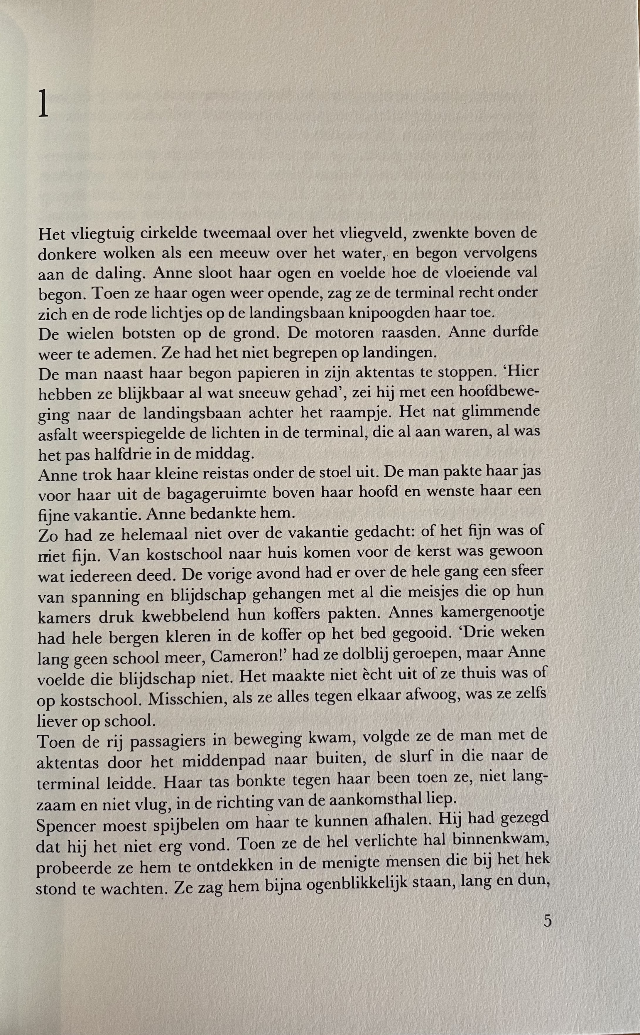 Sinds haar moeder is overleden, is Anne een vreemde voor zichzelf en voor anderen. Krampachtig houdt ze de herinnering aan haar volmaakte moeder levend en ze kan niet accepteren dat haar vader is getrouwd. In de kerstvakantie sluit ze zich steeds meer af. Ze gaat het liefst hardlopen of schaatsen. Dat is de enige manier om haar gedachten en gevoelens uit te schakelen. Tijdens een van haar schaatstochten valt ze. De pijn brengt haar terug in de werkelijkheid. Eindelijk is ze in staat haar moeder te begrijpen en afscheid van haar te nemen.