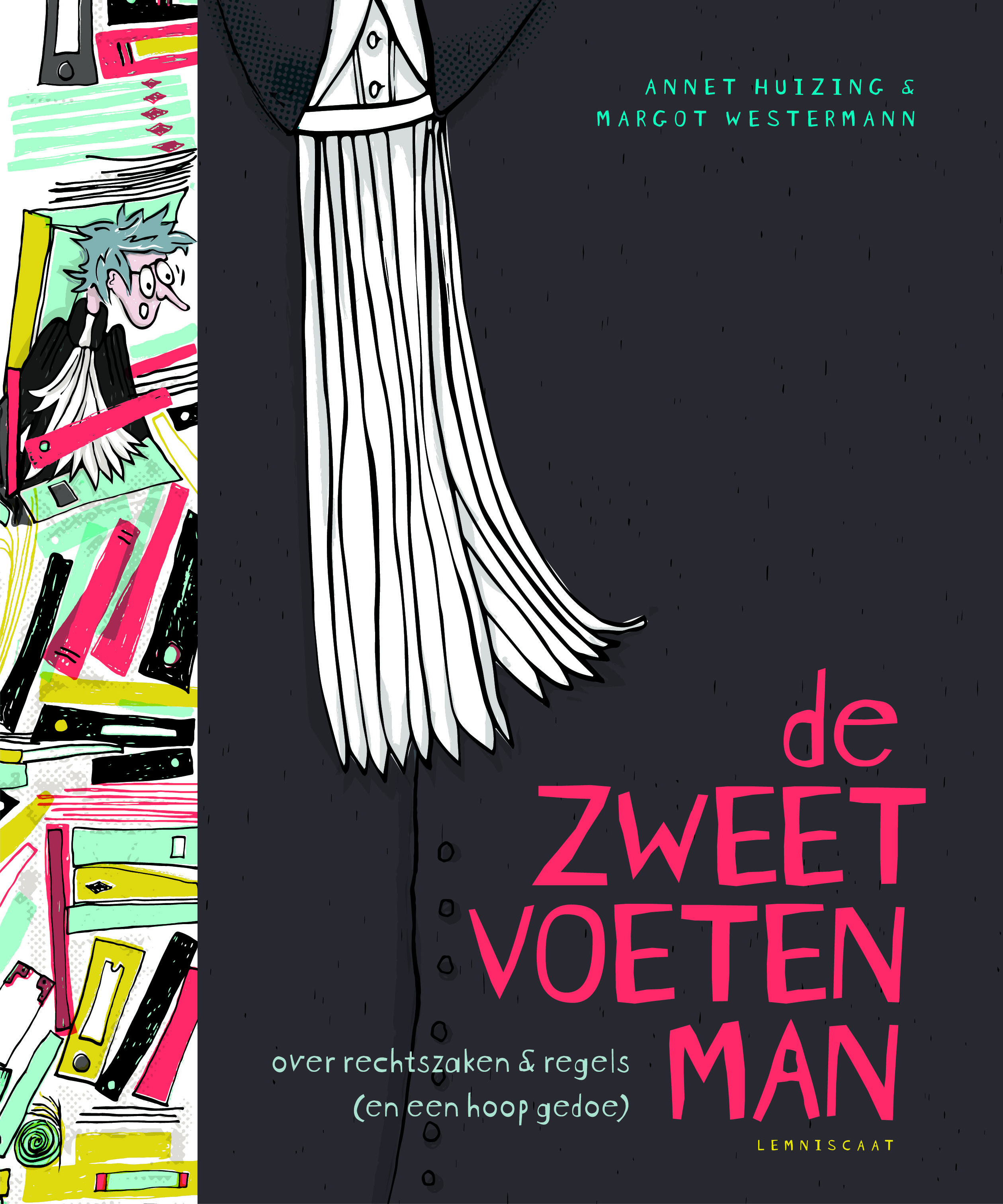En waar gaan die verhalen dan over? Over het zeilmeisje Laura, dat eerst niet en later wel in haar eentje de zee op mocht. Over de man die ‘fuck de koning!’ riep. Over rapper Typhoon die door de politie aan de kant werd gezet omdat hij in een dure auto reed. En over de onterechte veroordeling van Lucia de B. Aan de hand van bekende en onbekende zaken ontdek je als lezer hoe het recht werkt en hoe een rechter tot zijn oordeel komt. Ook kom je erachter dat ogenschijnlijk eenvoudige zaken bij nader inzien toch meer haken en ogen hebben. Intrigerende vragen komen aan bod: wat als je per ongeluk de verkeerde vermoordt? Heeft een hond inspraak? Mag je je eigen fiets terugstelen? Wanneer mag je iemand een knal verkopen? Waarom bemoeit de overheid zich met hagelslag? En mag je liegen tegen de rechter? De verhalen zijn geïllustreerd met cartooneske tekeningen en infographics. Vier uitklappagina’s geven extra informatie over de gang van zaken in het recht, hoe het eraan toegaat in de rechtszaal en hoe een wet wordt gemaakt. Dit boek laat zien dat het recht overal is, en van iedereen.
