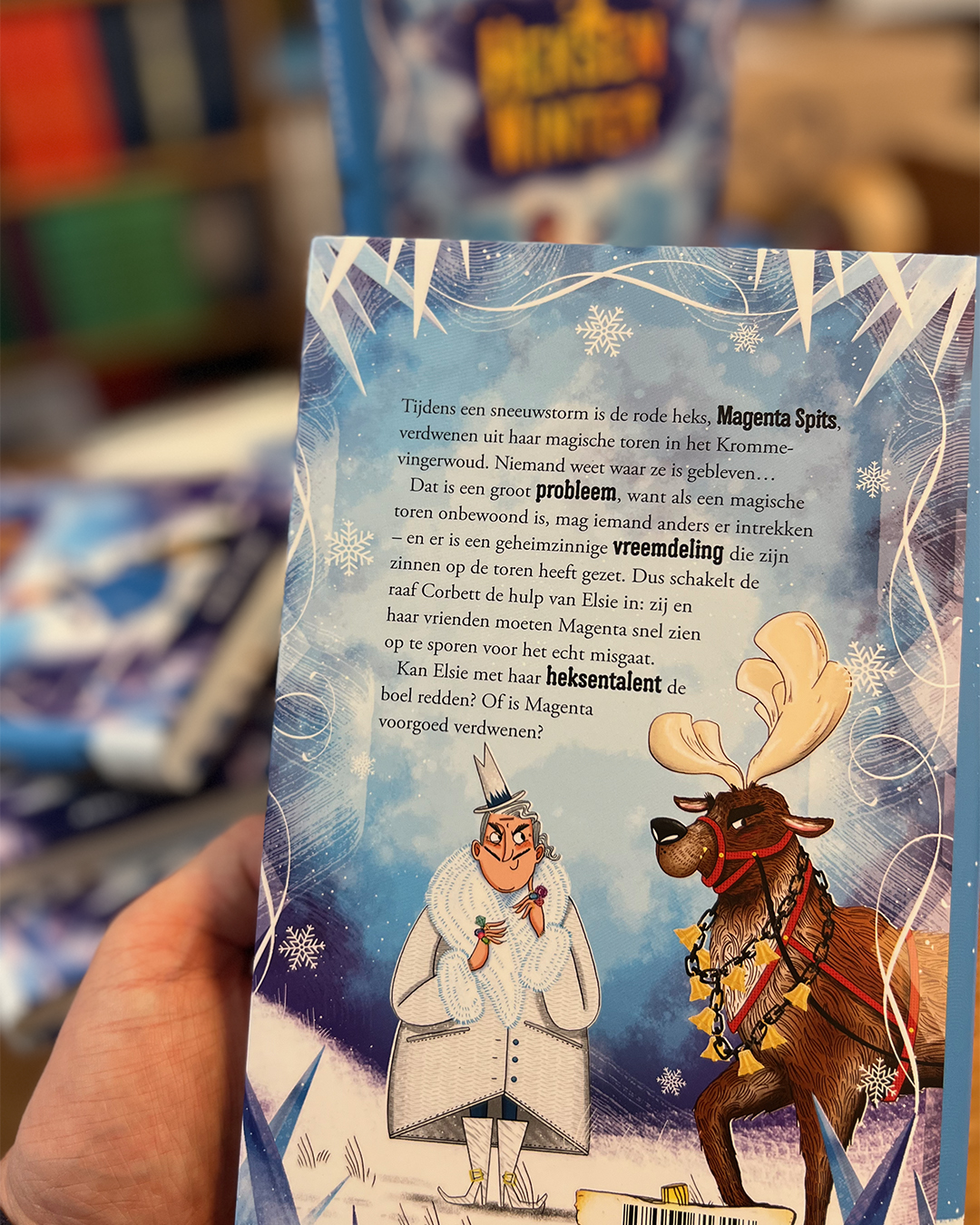 In dit vierde en laatste deel – dat ook los van de andere boeken te lezen is – komen alle geliefde personages uit de vorige boeken weer voorbij: Joey de postjongen, Sylfine Groenmantel die zo graag een bosnimf wil zijn, de heksenvriendinnen van Magenta, de chagrijnige raaf Corbett en Lastpak, de straathond die niet van Elsies zijde wil wijken... Garantie voor een verrukkelijk verhaal!