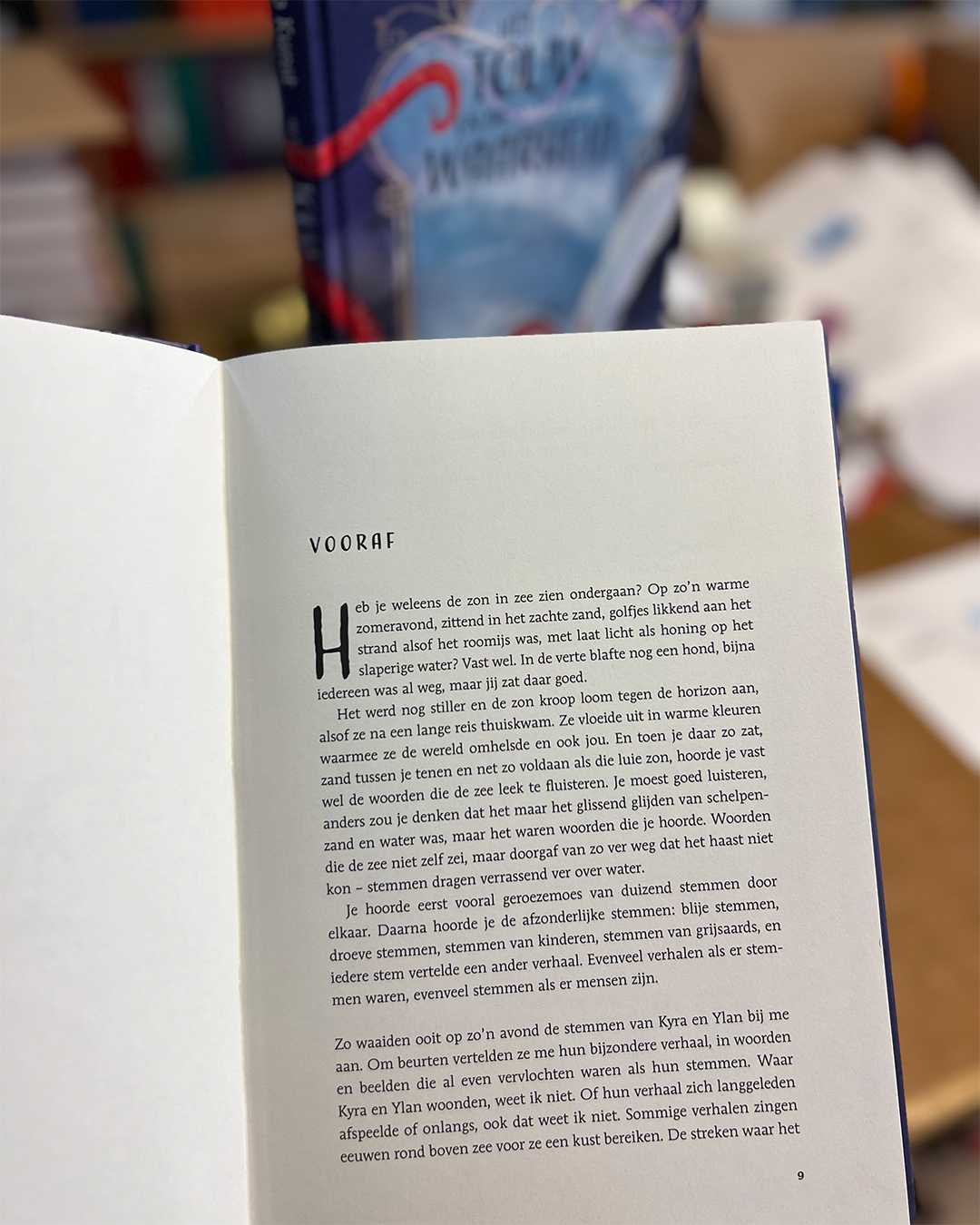 Heb je weleens de zon in zee zien ondergaan? Op zo’n warme zomeravond, zittend in het zachte zand, golfjes likkend aan het strand alsof het roomijs was, met laat licht als honing op het slaperige water? (…)Je hoorde eerst vooral geroezemoes van duizend stemmen door elkaar. Daarna hoorde je de afzonderlijke stemmen: blije stemmen, droeve stemmen, stemmen van kinderen, stemmen van grijsaards, en iedere stem vertelde een ander verhaal. Evenveel verhalen als er stemmen waren, evenveel stemmen als er mensen zijn. Zo waaiden ooit op zo’n avond de stemmen van Kyra en Ylan bij me aan. Om beurten vertelden ze me hun bijzondere verhaal, in woorden en beelden die al even vervlochten waren als hun stemmen. Waar Kyra en Ylan woonden weet ik niet. Of hun verhaal zich lang geleden afspeelde of onlangs, ook dat weet ik niet. Sommige verhalen zingen eeuwen rond boven zee voor ze een kust bereiken. De streken waar het verhaal van Ylan en Kyra zich afspeelt, heb ik in geen atlas kunnen vinden. Het leven was er anders dan hier. Maar hoe anders ook, hun verhaal raakte me en daarom vertel ik het nu aan jullie.