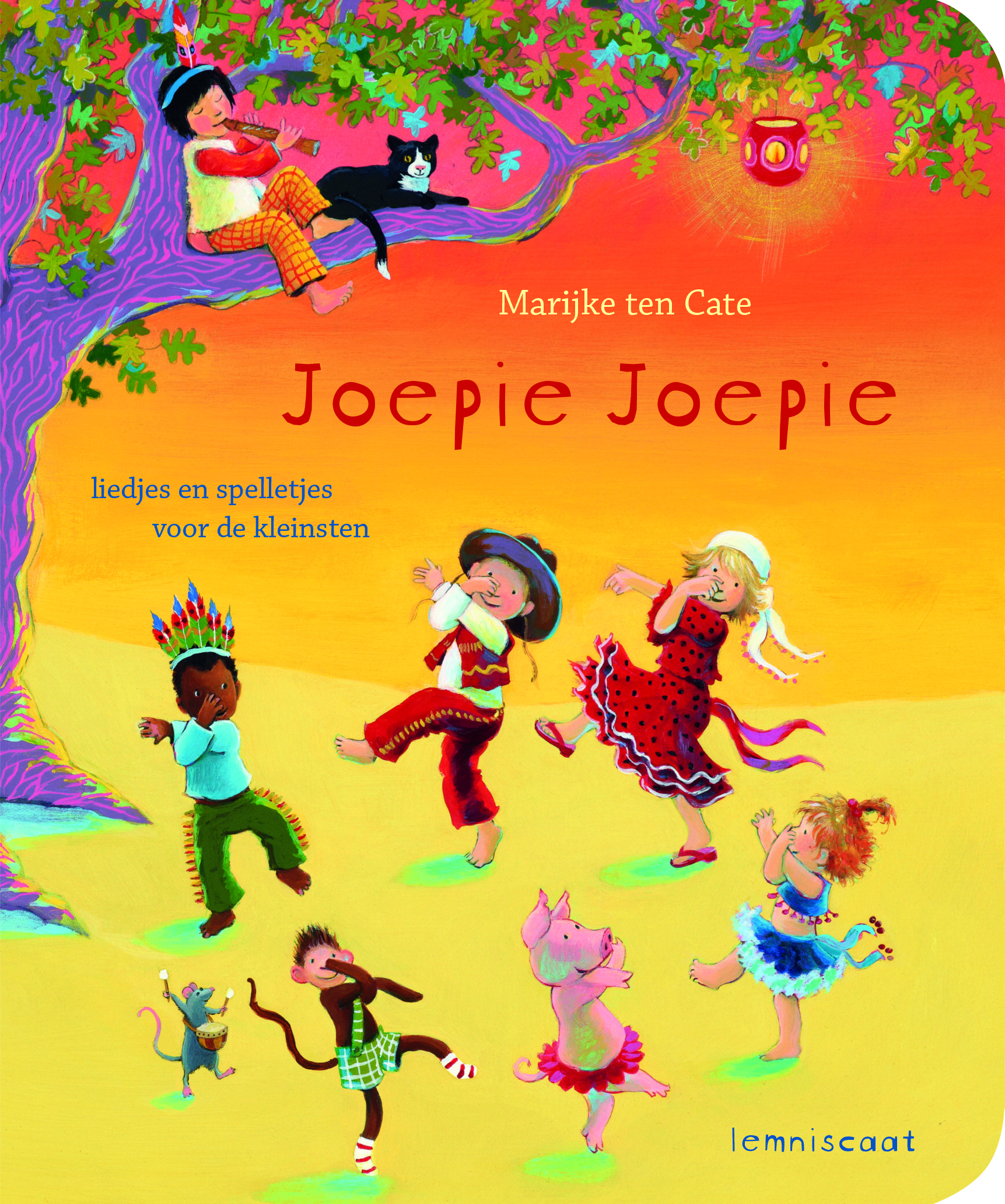 ‘Zakdoekje leggen’, ‘Twee emmertjes water halen’, ‘Heb je wel gehoord van de Zevensprong’ – wie kent ze niet? Twaalf bekende kring-, klap- en spelletjesliedjes worden in prenten gegoten op de vrolijke en kleurige manier die het werk van Marijke ten Cate kenmerkt.