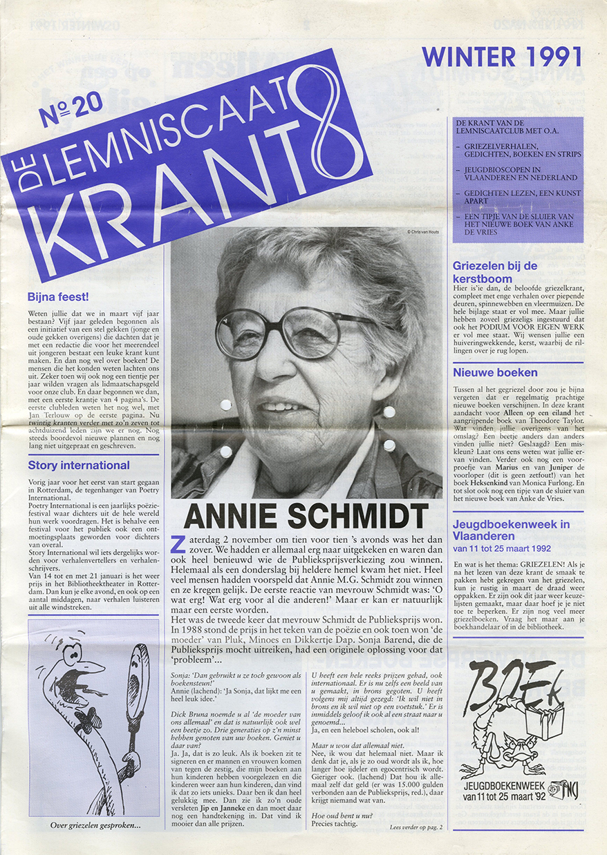 WAUW! Lemniscaatkrant nummer 20 alweer! Met onder andere een interview met de grootheid Annie M.G. Schmidt, een berg leesfragmenten en de aankondiging van het nieuwe boek van Anke de Vries. Over wel boek zou dat gaan? O ja, er zit weer een bijlage bij! Allemaal boeken om bij te griezelen. En natuurlijk veel meer.