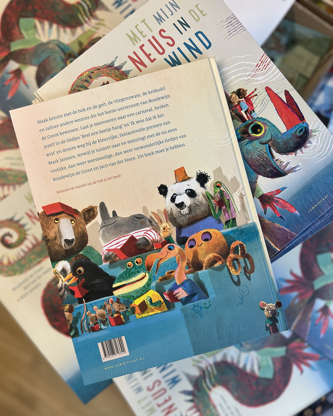 En nu is er meer! Maak kennis met de bok en de geit, de vliegenzwam, de krokodil en talloze andere wezens die het bonte universum van Boudewijn de Groot bewonen. Laat je meevoeren naar een carnaval, herken je in de liedjes ‘Best een beetje bang’ en ‘Ik wou dat ik het wist’ en droom weg bij de kleurrijke, fantasievolle prenten van Mark Janssen terwijl je luistert naar en meezingt met de nu eens vrolijke, dan weer weemoedige, dan weer verwonderlijke liedjes van Boudewijn de Groot en Jaco van der Steen. Dit boek moet je hebben.