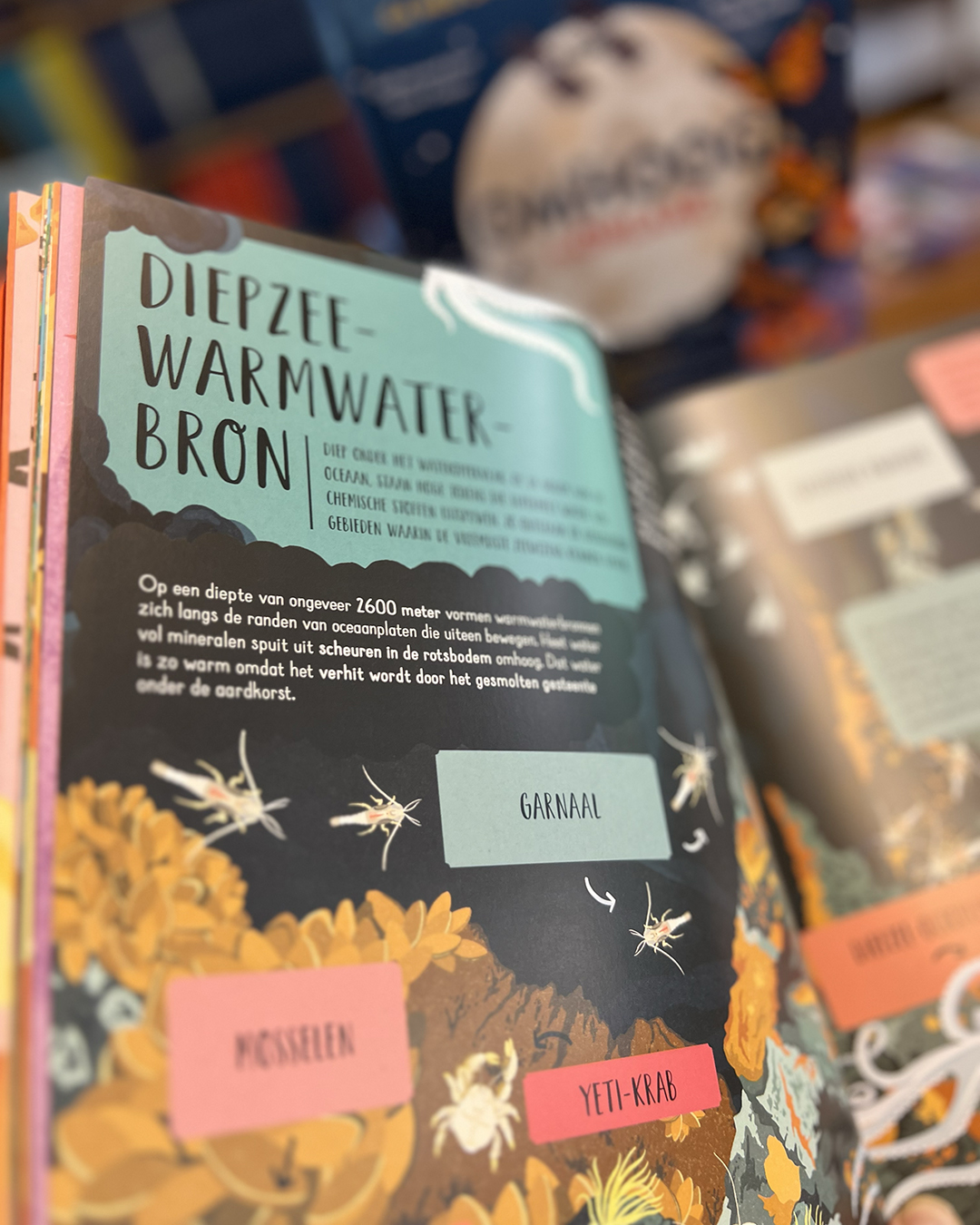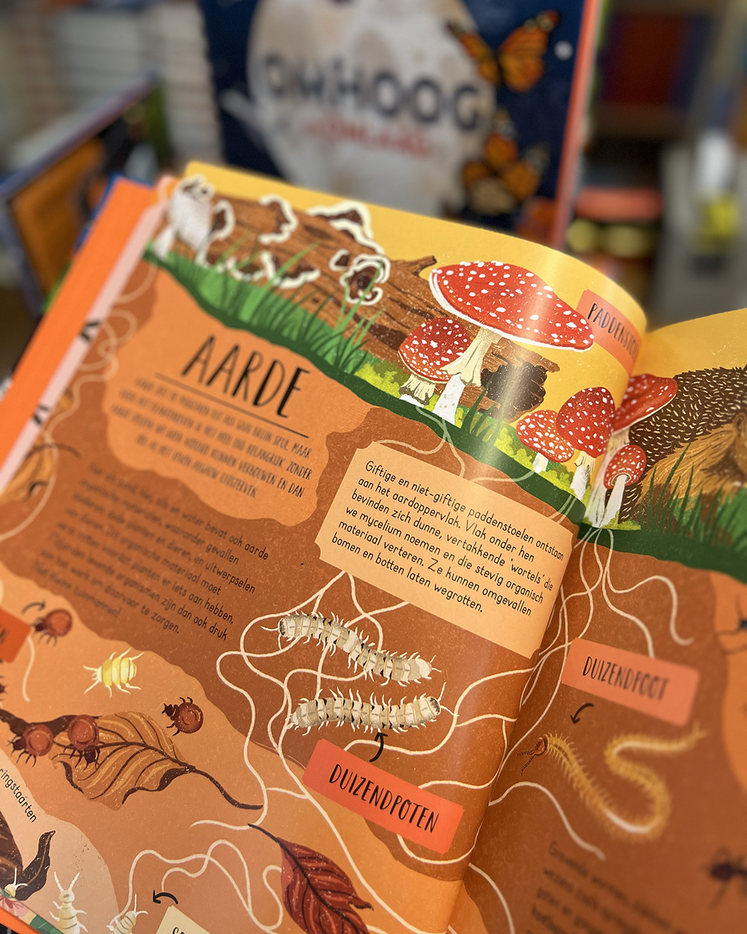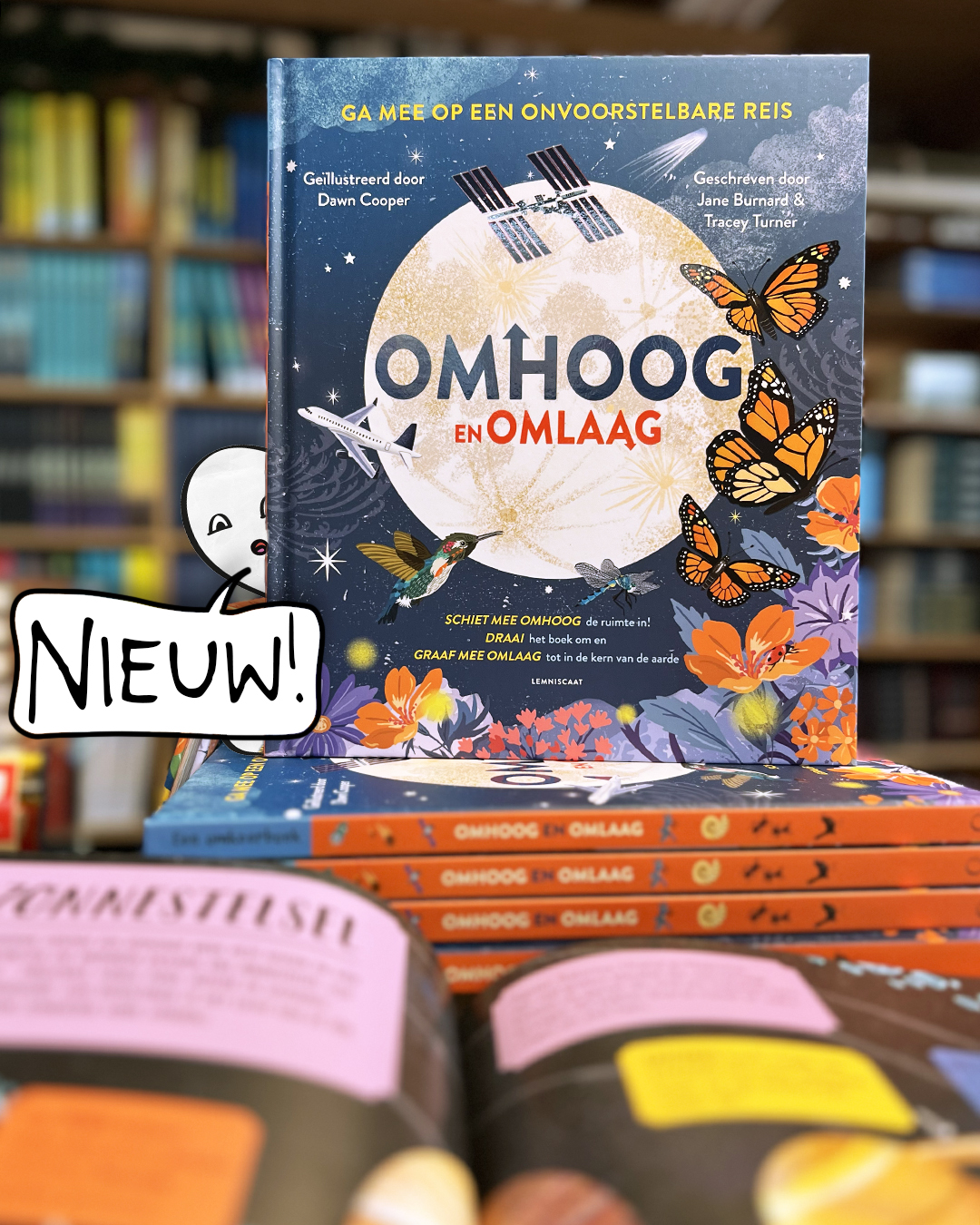 En als je het heelal hebt verkend, draai je het boek gewoon om! Reis mee tot ver onder de straten van een stad en langs de ondergrondse woningen van diverse dieren. Ontdek diepe, donkere grotten, vurige vulkanen en (meer dan) kokendhete onderwaterbronnen en ontmoet gigantische kokerwormen en Yeti-krabben. Uiteindelijk komen we aan in de kern van de aardbol, waar het bijna net zo heet is als op het oppervlak van de zon, maar waar de sleutel tot alle leven op aarde te vinden is.