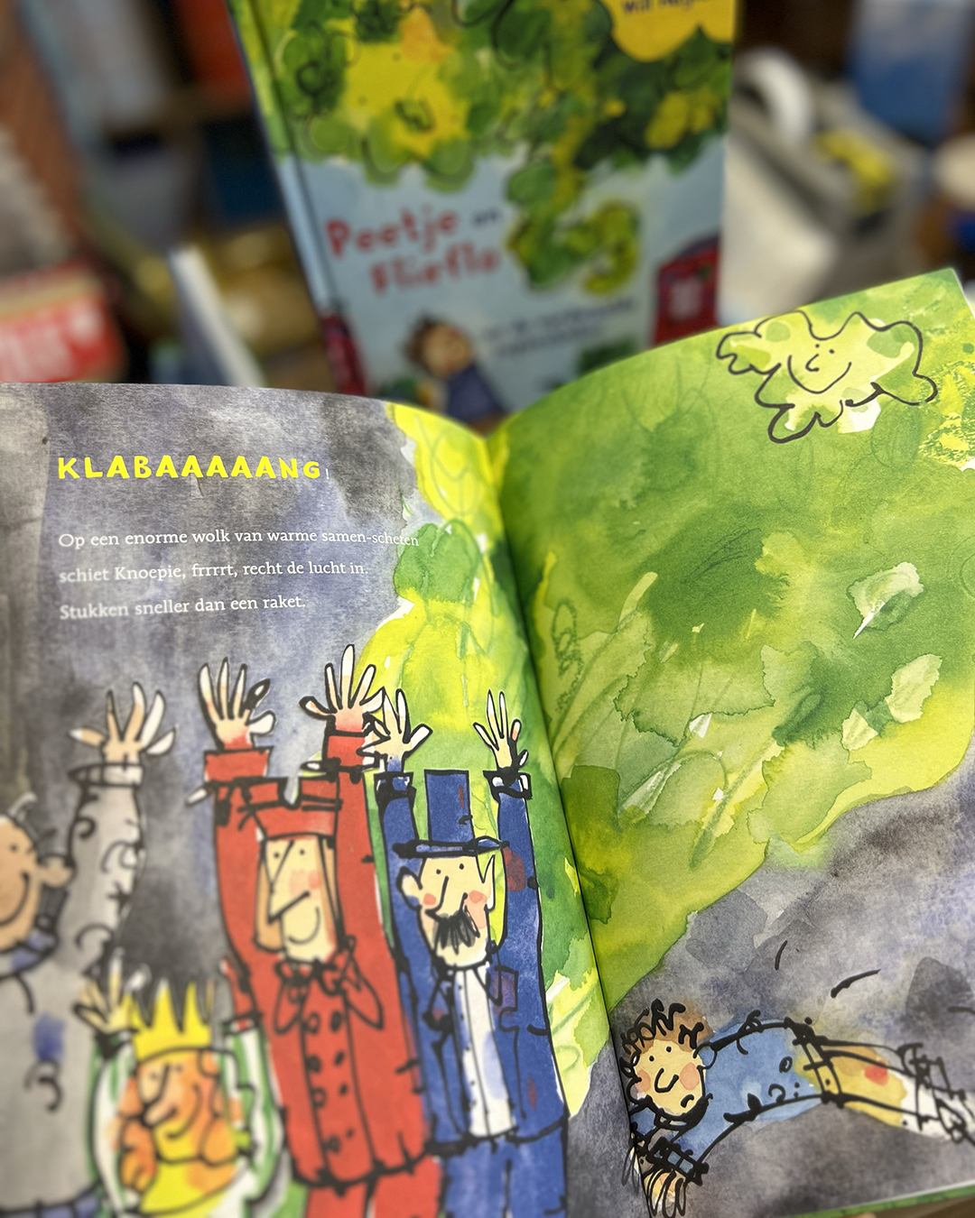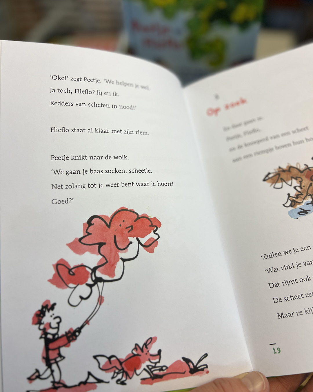 Op een dag vinden Peetje en Flieflo een eenzame wolk boven de bank in het park. Het is niet zomaar een wolk: het is een scheetwolk. Een geweldige, gigagrote scheetwolk, zo eentje die je niet zomaar zelf kunt produceren. Haar baasje is verdwenen en heeft haar achtergelaten, helemaal alleen. Bij wie zou ze horen?