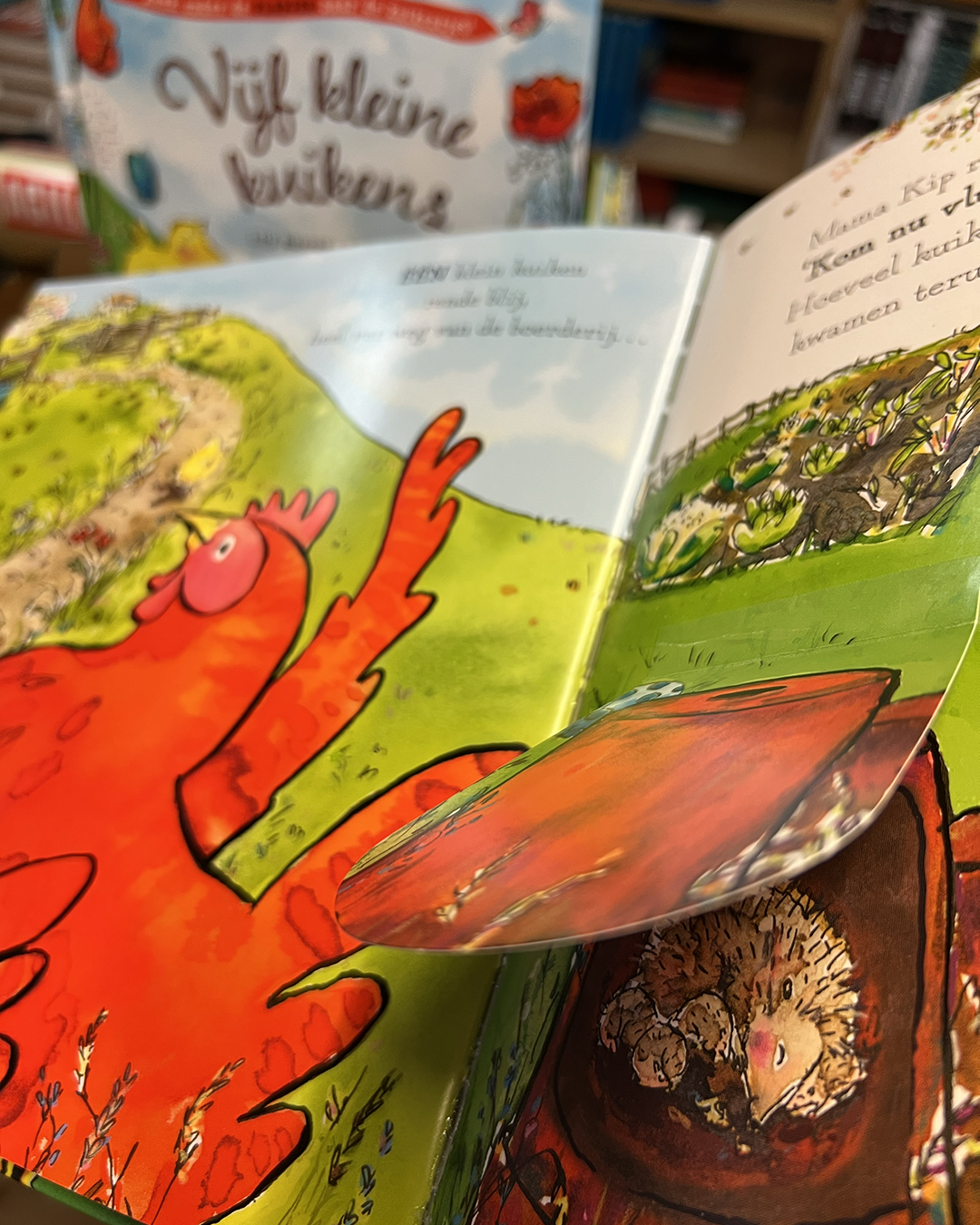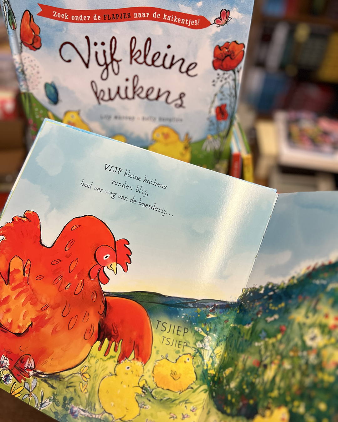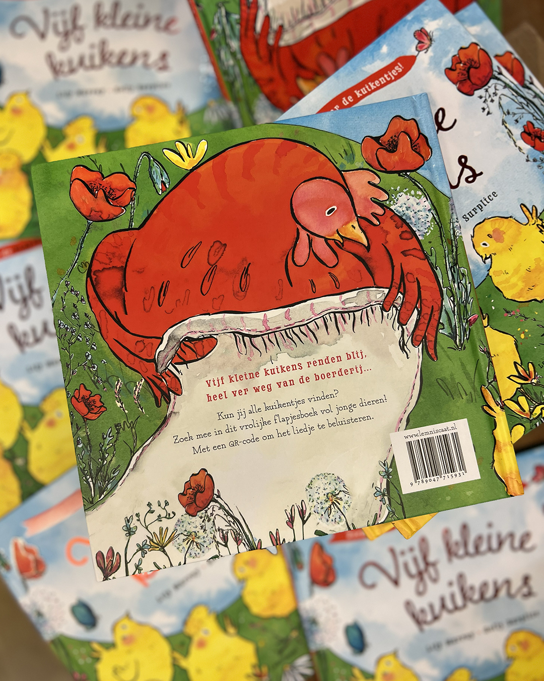 Til de flapjes op om alle kuikentjes te zoeken en ontdek aan het einde hoe ze Mama Kip verrassen! En wie het liedje Five Little Ducks kent, zingt dit prentenboek uit volle borst mee.