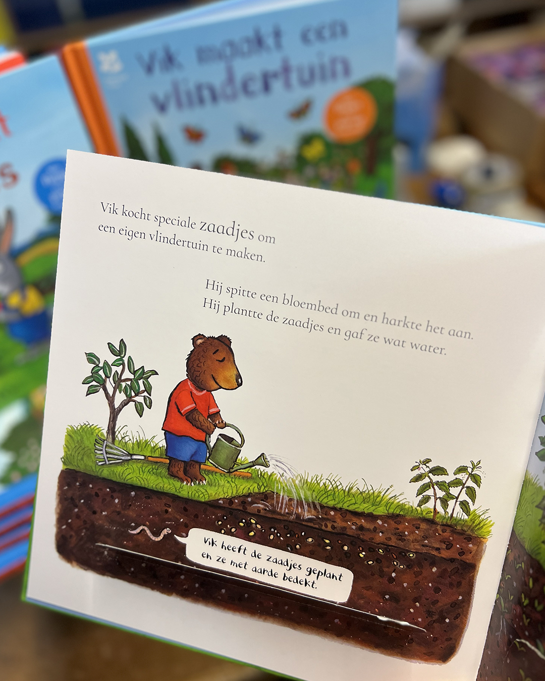 Vik werkt graag in zijn tuin. Samen met zijn vrienden Worm en Lieveheersbeestje besluit hij een bijzondere bloementuin aan te leggen, speciaal voor vlinders.