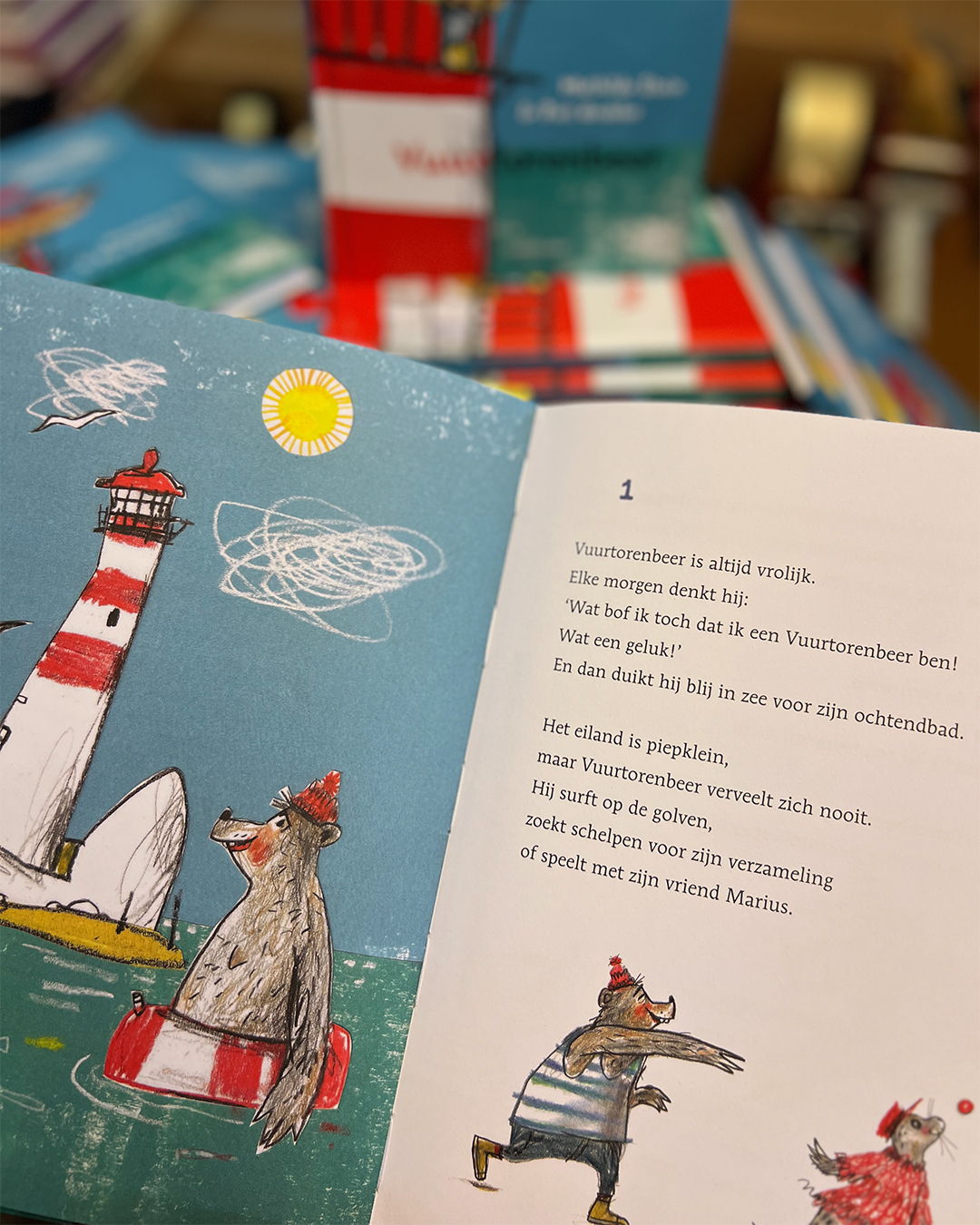Vuurtorenbeer was altijd blij. Elke morgen dacht hij bij zichzelf: Wat bof ik toch dat ik een Vuurtorenbeer ben! Wát een geluk!