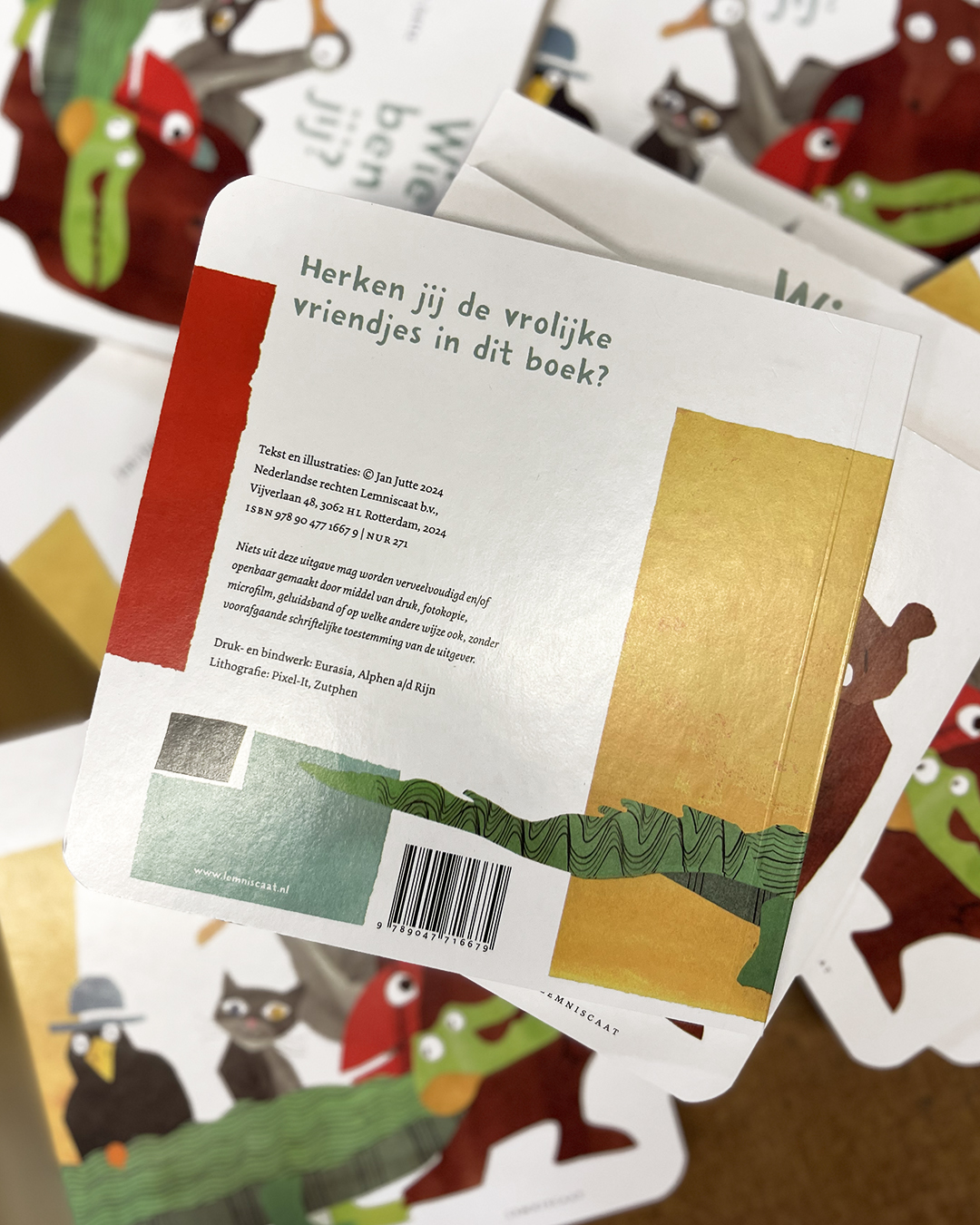 De dieren die drievoudig Gouden Penseelwinnaar Jan Jutte heeft geschilderd, zullen dikke vrienden worden met de allerkleinste lezers. Steeds opnieuw zullen ze hun gezelschap opzoeken. Want wat is er nou leuker dan raden wat je stiekem al een beetje weet?